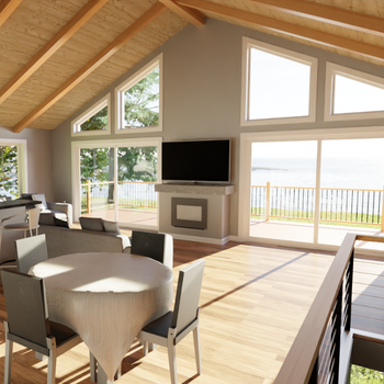 The Sycamore addition optimized the existing foundation and flooring to provide the homeowners with uninterrupted breathtaking views of their surroundings - a beautiful upgrade to an existing cabin on the Great Lakes!